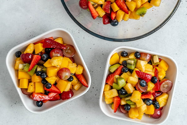 برای داشتن یک تغذیه سالم بهتر است مصرف میوه‌ها و سبزیجات تازه را در رژیم غذاییتان بیشتر کنید. شما با استفاده از میوه‌های کم قند مثل توت‌فرنگی، پرتقال، هلو یا آووکادو می‌توانید یک سالاد میوه ترش و شیرین و خوشمزه برای شروع روزتان اماده کنید. خرد کردن این میوه‌ها و آماده کردن این صبحانه ساده است و بیشتر از یک دقیقه وقتتان را نخواهد گرفت در حالی که انرژی ابتدای روزتان را کاملا تامین خواهد کرد. این میوه‌ها علاوه بر قند متعادل دارای ویتامین‌های مهمی مثل ویتامین سی و ب هستند که بسیار برای بدنتان مفید است.