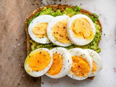 در زمانی که تخم مرغ در حال پختن است، نان را برشته کرده و آووکادو کوبیده شده را روی آن بمالید. پس از آن که تخم مرغ پخته شد، پوست آن را بگیرید. یک تکنیک ساده برای راحتتر کندن پوست تخم مرغ آبپز این که تخم مرغ را در لیوانی قرار دهید، آن را تا روی تخم مرغ با آب سرد پر کنید. سپس، با قرار دادن در روی لیوان، شروع به تکان دادن لیوان کنید به طوری که تخم مرغ به در لیوان بخورد. با تکرار این کار، کم کم پوست تخم مرغ ترک میخورد. بعد از چند بار تکان دادن، تخم مرغ را از لیوان خارج کنید و پوست را به راحتی بکنید. حالا، تخم مرغ آبپز را به شکل ورقهای برش زده و روی نان قرار دهید. در آخر هم روی آن کمی نمک و فلفل سیاه بپاشید.