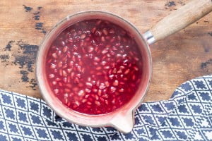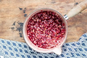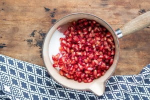 دانههای انار، شکر و آب پرتقال را درون یک شیرجوش بریزید و روی شعله متوسط گاز قرار دهید. اجازه دهید حدود 5 دقیقه به آرامی بجوشد و در این مدت، مرتب مواد را هم بزنید. سپس، حرارت را کم کنید تا به مدت پنج دقیقه دیگر بجوشد و قُل بخورد.