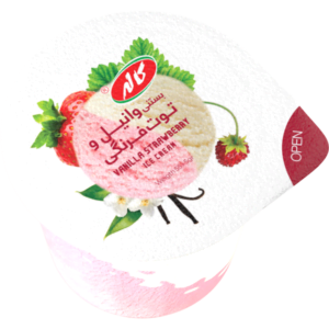 بستنی لیوانی دو رنگ وانیلی توت فرنگی