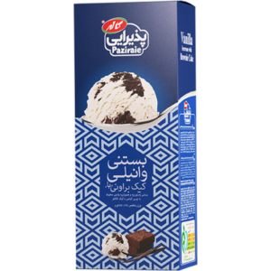بستنی پاکتی پذیرایی وانیلی با کیک براونی یک لیتری