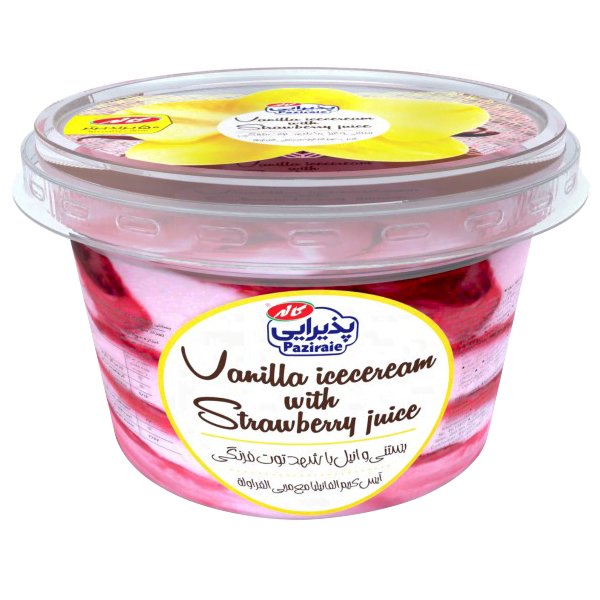 بستنی لیوانی وانیلی با شهد توت فرنگی